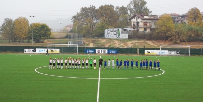 Primo tempo: dopo i primi minuti di studio per entrambe le squadre sono gli ospiti a rendersi pericolosi in piu’ occasioni, la prima capita sui piedi del numero 10 gialloblu Balmasseda che sfugge con bello slalom al suo marcatore sulla fascia destra e conclude in porta ma trova l’ottima opposizione del portiere locale.Il Borgaro continua a macinare gioco e prova ad abbattere il muro locale ma non trova spazi per concludere , nel frattempo i locali ripartono in contropiede ma la difesa gialloblu non lascia grandi spazi agli attaccanti di casa. Sul finire del tempo una grossa occasione per Devito ,che approfittando di un errore della difesa si presenta tutto solo di fronte al portiere ma sbaglia l’ultimo controllo e tira contro l’estremo difensore in disperata uscita. Primo tempo che si chiude a reti inviolate.