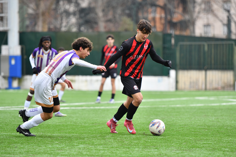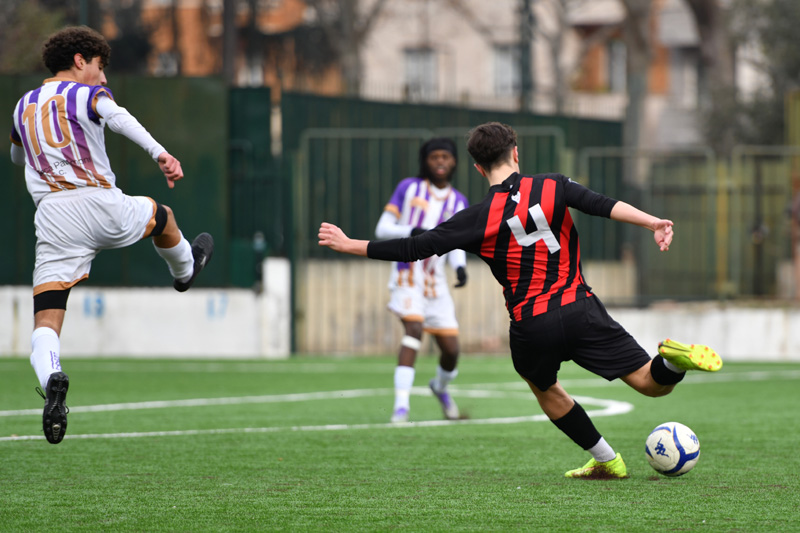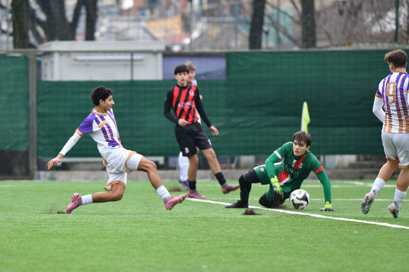 GALLERIA FOTOGRAFICA - I rossoneri vincono 4-6 grazie alla doppietta di Buffon e Bunjaj e alle reti di Monterosso e De Stasio, alle violette non bastano i gol di Robazza (doppietta anche per lui), Pellegrino e Salvatore. Partita da ricordare anche per i gemelli Cipriani, il portiere del Cenisia Alberto e il difensore della Cbs Filippo. Le fotografie sono di Thomas Parisi
