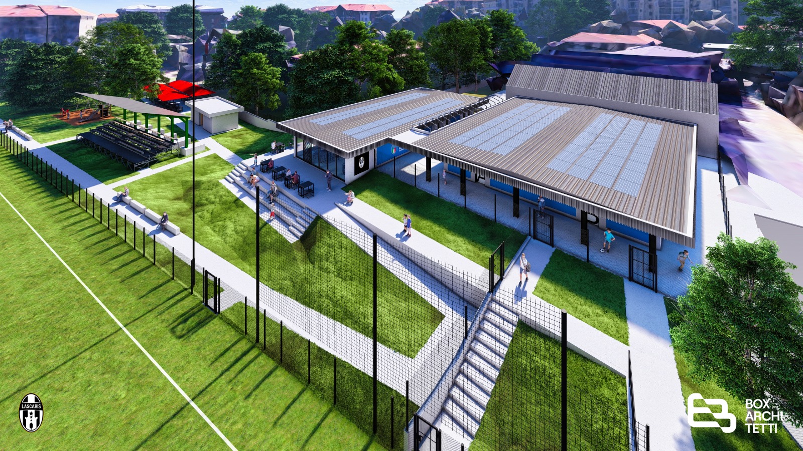 I dettagli, partendo dal Meroni. I due campi in erba sintetica rimarranno come sono, seppur con una nuova recinzione, ma sarà fatta piazza pulita dei container e di tutte le costruzioni attualmente esistenti. Verrà costruito un edificio ex novo con sei spogliatoi, infermeria, uffici e un bar-ristorante. La struttura avrà percorsi completamente nuovi, pavimentati e con rampe che garantiscano l’accessibilità anche a fronte di importanti dislivelli, una piccola area giochi per bambini, una tettoia per mangiare all’aperto. Il luogo ideale, insomma, per ospitare dei tornei.